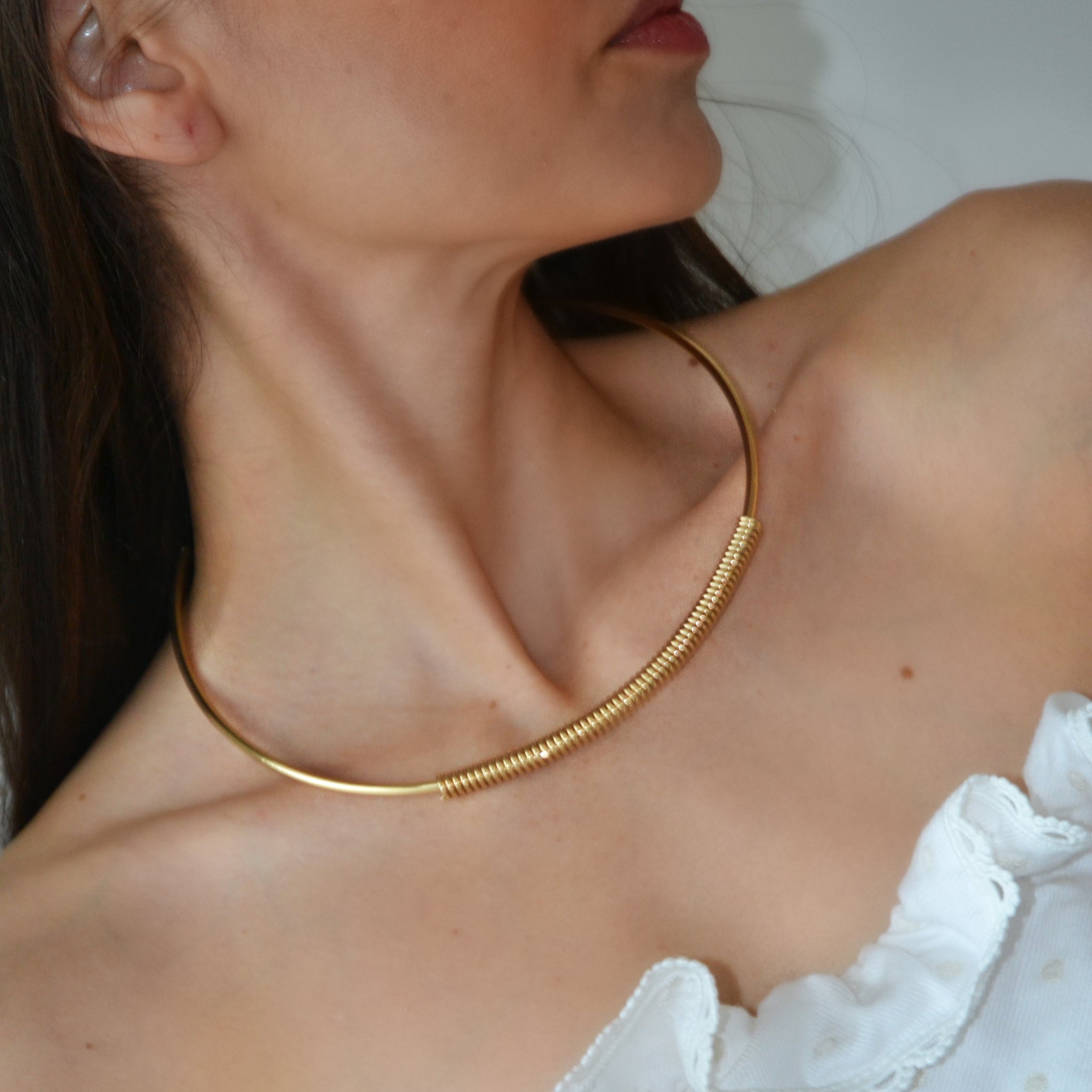 This sleek choker, a modern take on the Hasli is available in both gold and silver plating, is the epitome of modern elegance. With its clean and smooth finish, it adds a touch of sophistication to any look, making it a versatile piece for both casual and formal occasions.