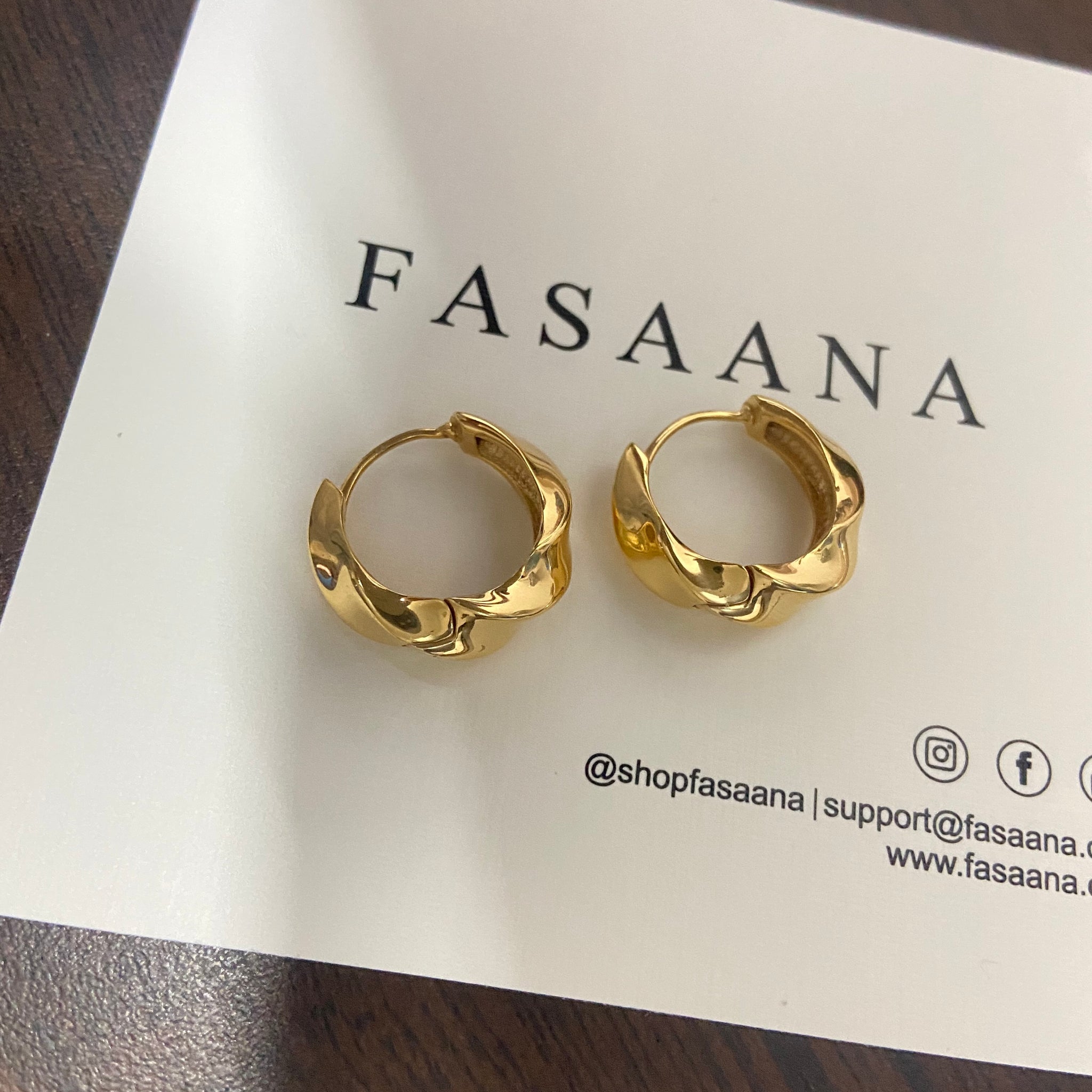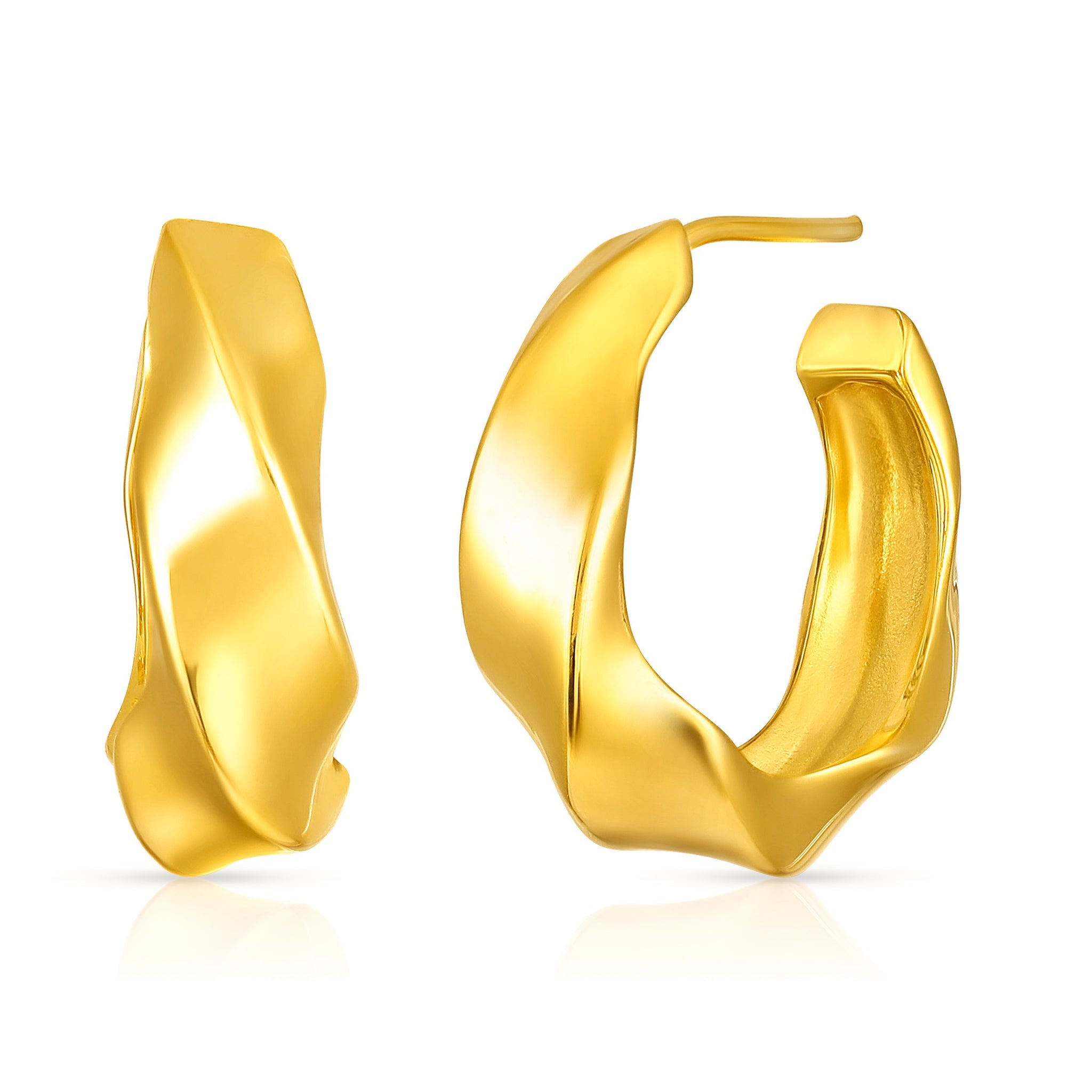 Beautifully unique, the celestial crater Hoops in Gold brings a sculptural texture to your ear stack. These hoops are statement & curvy in all the right places. So whether you're wearing them alone, or with huggies in your other piercings, they will always be an eye-catching addition.