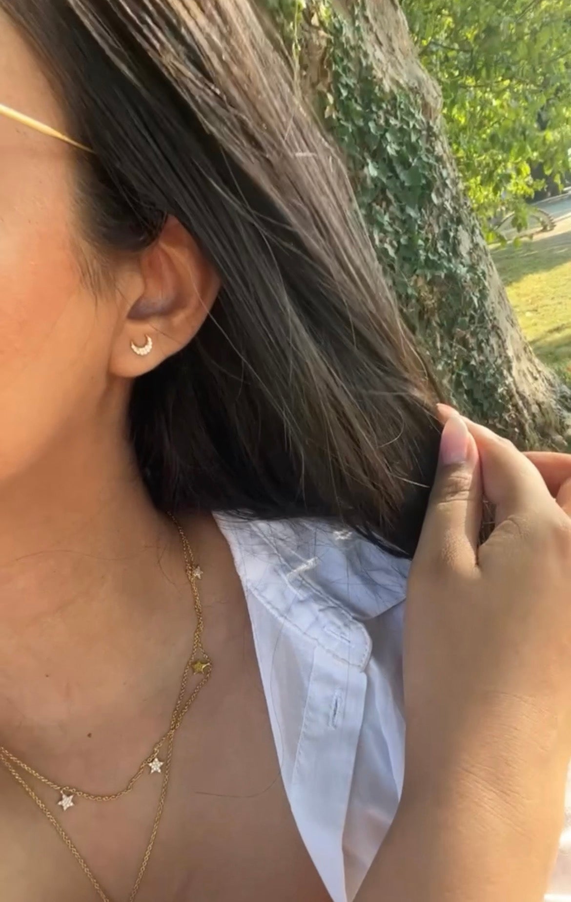 Introducing our Moon Studs - a beautifully crafted piece of jewelry that captures the elegance and mystery of the moon. These studs are expertly designed to showcase a delicate half moon shape that radiates with timeless beauty.